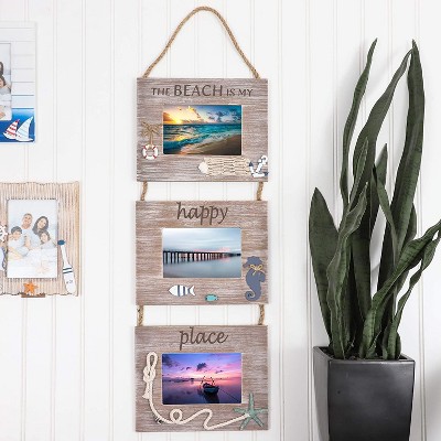 Nautical beach hanging picture photo frames 3 collage 4x6 for home wall decor, brown 9.25x29.5x0.25 juvale. Rated 4.5 out of 5 stars. Vereinen sie im handumdrehen ihre lieblingsfotos in ihre eigene fotocollage! This coastal frame covered in blue sea glass & shells with a starfish accent is perfect for weddings, vacation memories, gifts and more. 4.5 out of 5 stars.